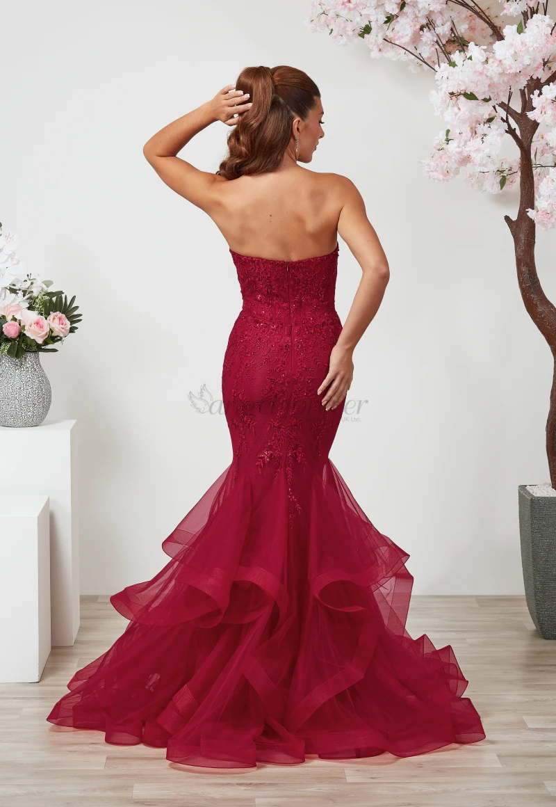 - LACE AND CRYSTAL BEADED TULLE RUFFLE SKIRT FISHTAIL.