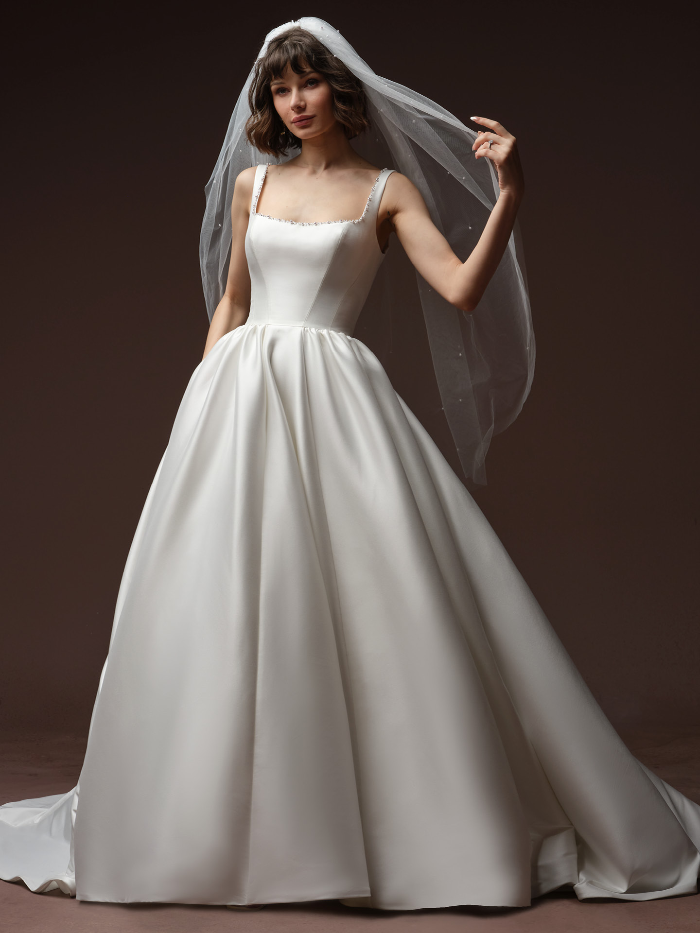 Classic ball gown with straps to give a elegant look.