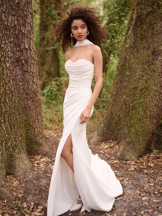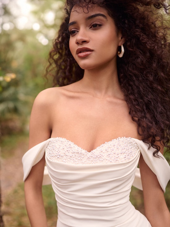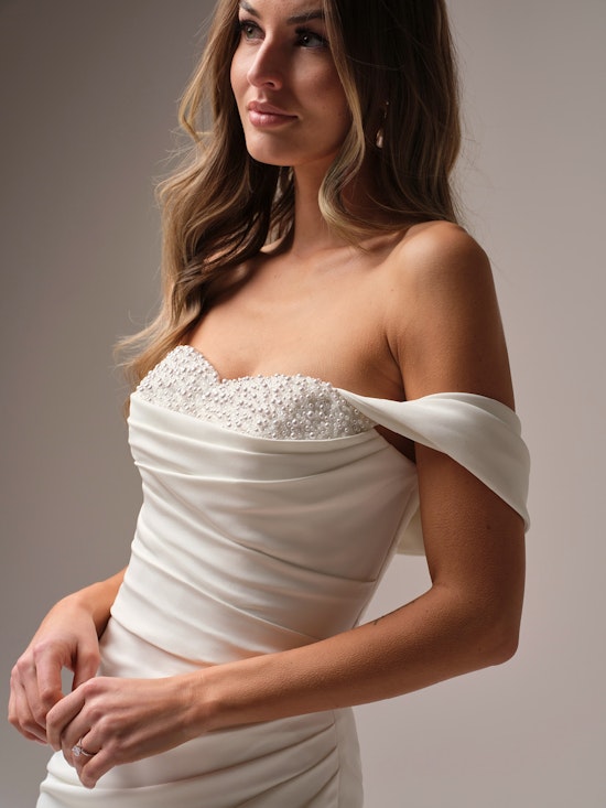Modern pearl cowl sweetheart neck sheath bridal dress.