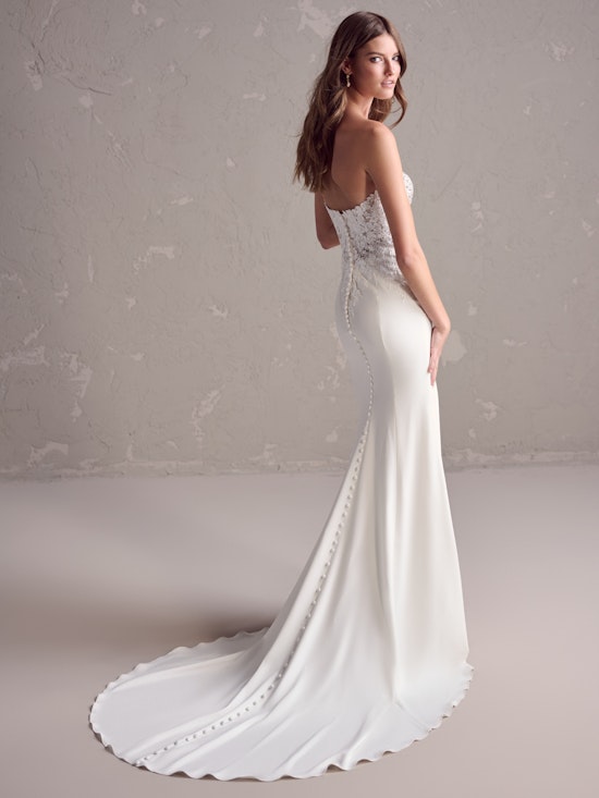 Fit-And-Flare Crepe Boho Sweetheart Neckline Bridal Dress With An Illusion Lace Bodice.